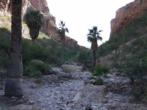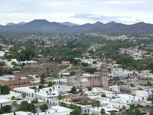 Left El Mirador as dawn broke last Saturday. Picked our way through San Carlos to find Rte 15 and bypass Guaymas. Stayed on the cuota (toll road) through Obregon with stops at Pemex (gas stations) for fuel and/or potty breaks and/or lunch. Smoky views of the distant mountains across miles of scrub and patches of burning. Flat ugglies. Through farming areas with irrigation canals and many large green fields. In Navajoa we left Rte 15 and took the road to Alamos. Pleasant surprise to find the road has been widened and resurfaced, not the headache we feared based on our leaders' experience last year. Arrived in this RV Park right in Alamos around 2pm. 169 miles. Alamos is a historic town, once much larger and the center of huge silver mining operations in the last century. Many of the ancient houses have recently been bought up and renovated by ex-patriate gringos, now a significant though isolationist segment of the town's population. We experienced an unexpected sense of deja vu as we finally put our feet down in real Mexico (which San Carlos was not.) Memories of our happy times in the Dominican Republic came rushing back, along with some of our Spanish.