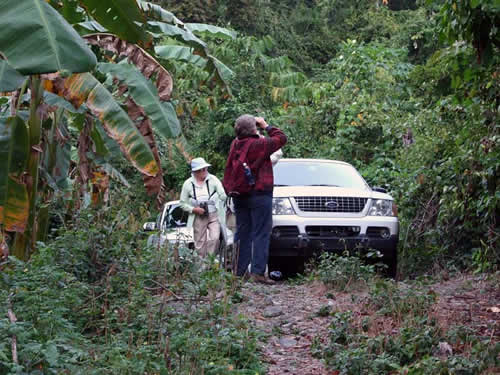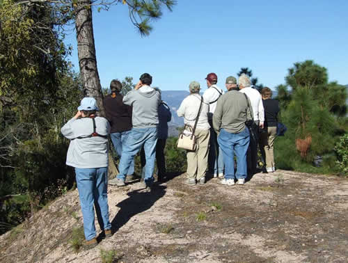 Friday morning we left our RV's, made car pools and drove through Mazatlan to the turn off for the Durango highway and made our way into the Sierra Madre mountains. The highway is a marvellous bit of engineering, and well maintained. Narrow and few shoulders or barricades, it puts US Rte 1 along the northern California coast to shame. Constant twists and turns up and down the mountain/cliff sides with fabulous views of the Sierra. The only road making the mountain crossing, it's very busy with trucks and tractor trailors. These guys have to cross the yellow line to get round many of the corners, and if they meet on one they have to stop and jocky back and forth to pass. All the trucks we encountered were driving carefully, but not so the locals in small cars. The many sad crosses and shrines along the roadside were testament to the dangers of impatience. We stopped for lunch in the small village of Copala, at the renowned Daniel's restaurant, and then continued on to the village of Capilla del Taxte. 64 miles. We stayed 2 nights at the Hotel Villa Blanca, a local landmark built by some Germans 50 years ago, and now owned and operated by the village. A great Mexican experience, with birding forays 20 miles or so further into the mountains each day. Yesterday, back to Mazatlan (felt like we'd been away a lifetime) and happy to be home again in Clemmie. It's finally warm! Today, we have a free day and access to WiFi so its time to update the website. Photos will have to come later.