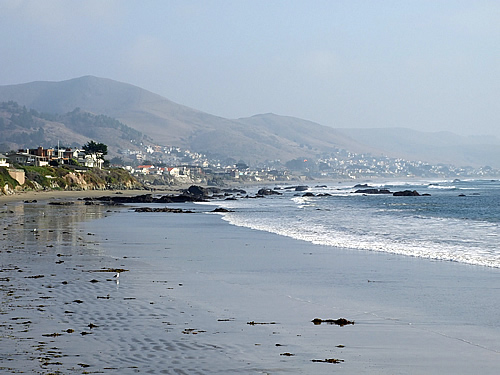 We exited Marin RV Park Wednesday morning just on 5 a.m. Met an oil tanker at the park gate, driver came off the freeway and got lost on our dead end. Helped him turn around. Then onto the freeway, Rte 101. Every road in CA is a freeway it seems. Across the Golden Gate bridge and through San Francisco, traffic still light thankfully, road rattling our teeth. South of the city rush hour picked up thithering and yonning 'tween San Francisco and San Jose. Took I-308 across to I-208, instant peace. Little traffic and good surface on newer freeway along the margin of undeveloped Santa Cruz Mountains. Then to Rte 85 (another freeway) skirting San Jose on the south. Not sure if we were legal or not, Rte 85 is a no-truck route. Feared low bridges but found none. Saw one bus, no other RV's. No-one stopped us, breathed sigh of relief on rejoining Rte 101. Took an exit for an urgent piss - no services on this route so far, 2 hours non-stop. Daylight breaking at last, driving easier. CA road system living proof that if you build it, they will come. Filled up with gas (only $3.03/gallon) near Salinas. Through irrigated fields, filled with bent backs picking produce. Converted school buses (towing Port-a-Poties) hauling migrants to work. Then wine country, some cows on the sun-dried hillside, little fodder for them there. It's a dry place. Exited the freeway in Atascadero onto Rte 41 (pleasant 2-lane road; hilly, windy, and scenic.) Arrived in Morro Bay, stopped at the grocery store, and pulled into our reserved campsite for a late lunch. 260 miles. This place is filled. Glad we made a reservation. It's convenient, across the dunes from the beach of wide Estero Bay, easy access (good bike bath) to the town and Morro Bay, with Morro Rock guarding the narrow entrance. The campground WiFi is annoyingly erratic and unreliable.