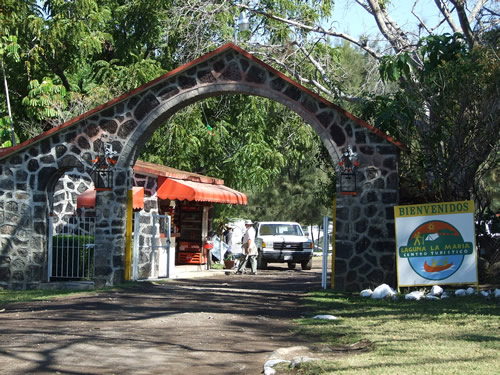 We left Laguna LaMaria at crack of dawn on Friday, the biggest rig barely sqeaking under the arch at the exit to the campground complex. A slow drive down the twisty side road so as to bypass Comala's narrow cobbled streets. Then reached the cuota (toll road) from Colima to Guadalajara. Slow going, mostly just 2 lanes and heavy traffic, trucks struggling on hills. Took the bypass round Guadalajara, 2nd largest city in Mexico. Well signed, 4 lanes, busy. Then along the cuota from Guadalajara to Tepic, a beautiful new 4-lane highway, we started to make up some time. Up and down some long big hills, past interesting villages, and through beautiful arid country with field after field of the agave whose roots are fermented to make Tequila. Saw the town of that name in the distance. Alas, no time to stop for photographs. Finally arrived in Tepic, the ancient capital of Nayarit, 240 miles and 8 hours later. This campground turned out to be a pleasant surprise. Last year it was very run down. Our wagonmasters found the phone recently disconnected so not sure what to expect. Happily, new owners are busily renovating it, were unaware of the caravan's reservation. Thankfully there was enough room for all of us. It's a prime location right in Tepic. We were glad to settle in for the night. These long hot drives are tiring.