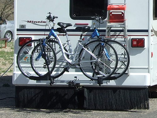 Yesterday, a sad awakening. The "security guard" at Los Mochis was riding around on a motor scooter when we got up at our usual 5am. On our early baño walk he inquired if we'd had a quiet night. (?Suspicious question?) We had, we slept soundly. Too soundly it turned out. Both our bikes had been stolen, cables cut and part of the bike rack disappeared. A bike also stolen from one of the non-caravan rigs. 2 tires stolen out of Richard and Georgia's pickup truck, and a ladder stolen from the back of Jim and Betty's rig. We learned that people in three of the parked RV's had observed some goings on, a person using the stolen ladder to climb over the fence; what looked like a trade of packages between the "security guard" and one of the tractor trailers. Packages then passed over the fence to - who? Our wagonmasters called the local policia who showed up quickly. We made the report for the group as best we could, stretching our Spanish to the limit. We find it hard to believe that the security guard wasn't in on this heist. While all of the official conversation was going on, a crop dusting plane spraying adjacent potato fields turned and made a few low passes over our parking area. What was that about?