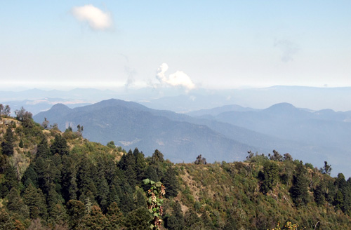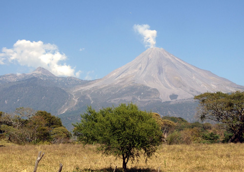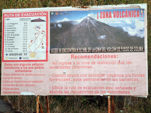Tuesday morning a week ago we were on our way out of Boca Beach before 8am. Back to the main road (Rte 200) then up and down through the hills, brief stop for a rig with toad (tow) problems on the steep windy road. Through the town of Cihuatlan to the Manzanillo bypass, Rte 200 Cuota (toll road.) Passed by a pull-off with a spectacular view. Aw shucks, no photo stop. Then away from the coast towards the mountains and Colima. Very hazy. Temperature inversion, cane burning, tall smoky stacks all contributing to what looked like poor air quality. Could barely clatch a glimpse of the volcanos (one active, one not) where we were heading until we bypassed the city. Then more narrow windy uphill road upon which the undercarriage of Richard and Gloria's truck (pulling their 5th wheel) erupted in a minor but still exciting conflagration. Then up a long cobblestone street into this remote and lovely small hotel complex with about 20 RV spots, evidently added specifically with birders in mind. 137 miles, not quite 6 hours. We're the only RV's here. Hot in the afternoon sun (mid 80's), overnight lows near 50°F. Great birding in the campground and environs. Good view of Volcán de Fuego exhaling. We have been here for 10 days, plenty of time to just be "at home." Pat figured out how to make interactive travel maps for the website, helped Linda give Snowbird and Flakie a bath, and reconnected with her writing project. Bill practiced guitar and continued his current philosophical studies (Radical Axiology by Hugh P. McDonald.)