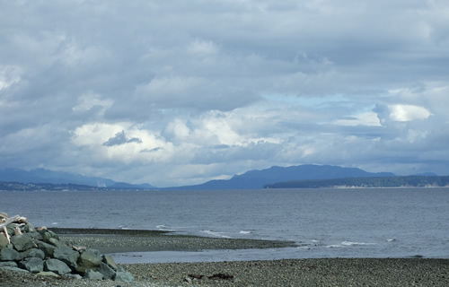 We left Vancouver Friday morning, east on the Trans Canada Highway, south on Rte 15 through Surrey to the border. Stopped somewhere along I-5 for groceries - we'd run 'em down since bringing all kinds of foodstuffs across the border is illegal (eggs, meat, produce, etc.) This time however no questions were asked. Continued south arriving here, just east of Seattle by mid afternoon. 163 miles. Pat spent an enjoyable week with her old school friend, Marian, in Courtenay on Vancouver Island, doing kitchen labor for Marian's Gerson Therapy protocol, running errands, and providing moral support for her cancer fight. While there she heard news about Bar-tailed Godwit E-7, a female, who flew non-stop from Alaska to New Zealand in 8 days. Talk about a WOW! Bill explored Vancouver, visited an old friend, walked the seawall, and practiced guitar. Bill took the bus to Horseshoe Bay late Wednesday to meet Pat's ferry, a happy reunion for both of us. And now we're spending a short weekend at Bill's nephew Paul, budding musician. Great musical times for all, Bill having his first recording session (poetry, guitar, singing.) Tomorrow, east to Moscow to visit Craig. Our travels seem to have morphed from sightseeing to people visits at the moment. No better way to visit than bring your own house with you.