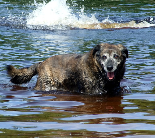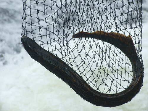 Eager to go, we left Mary's at 5:30am yesterday. In view of the intense heat wave and lousy air quality, we decided to avoid the NJ Turnpike and New York city metropolitan area. Drove north on I-270 then through Pennsylvania to Scranton, and east from there through the Poconos to Connecticut and north into Massachusetts on I-91. Pulled in here mid afternoon (457 miles) with Rusty managing to reach 35 mpg as we drove along peacefully at 55 mph. Clemmie trained us well to travel in comfort not haste. Hung out with Susan and Henry on their deck overhanging the Manhan River's bank. Henry informed us that the lampreys were running up the river. He took us down to the area below the dam where he snagged one in a fishing net for us to look at. Strange animals, unchanged for 350 million years. Don't miss the city environment one bit. Miss our dear ones in the DC area though.