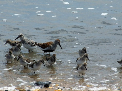 In appreciation for the work Pat did on the Constellations Group website, Betsy invited us to stay at her beach house for a few days R&R and to watch the incredible shorebird migration through the Delaware Bay. Timed to the spawning of horseshoe crabs, many species of shorebirds stop to refuel on crab eggs during their long migration from wintering grounds in South America to breeding grounds in the far north. Some populations, like Red Knots, Ruddy Turnstones, and Semi-palmated Sandpipers are almost entirely dependent on this stop; increasing harvests of horseshoe crabs threatens their survival. We drove down with Mary and spent time on the beach and at Gordon Pond (Henepin Point state park), Bombay Hook National Wildlife Refuge, the Dupont Nature Center at Slaughter Beach and the Little Creek wildlife area. 56 (bird) species sightings today.