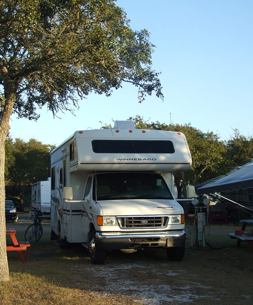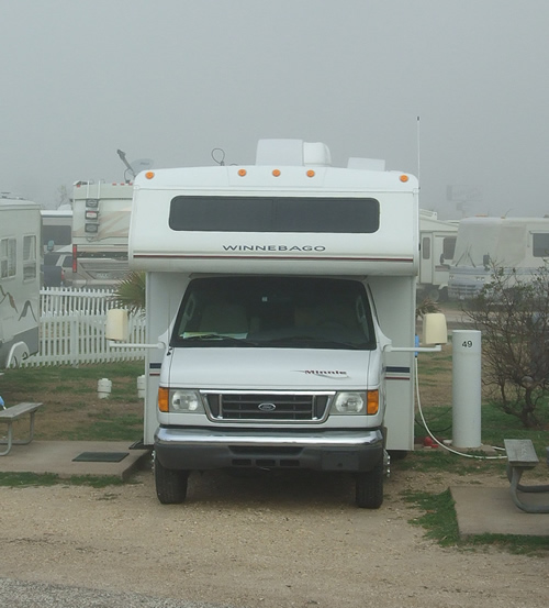 We woke up to a clear and cold New Year morning in Austin. Nice time visiting Andrea and Chuck, and enjoying Austin. We left their comfortable but chilly driveway around 8:30am that day, and drove south towards the coast. Made a couple of shopping detours, arriving in Rockport and settling into our campsite. in the early afternoon. 205 miles. The cruise control quit not far into our trip, we'd gone all of 300 miles since it was "fixed." The cool was not quite so here, and on arrival we sallied forth on foot (Bill) and bike (Pat) to do some preliminary exploring. Looked like this place will suit us fine for January. Good thing, we've booked a month - our longest one-spot stop so far. We're sliding into being "winter Texans." The last few week has been positively balmy, with overnight lows near 60 or above and sunny warmth during the day.