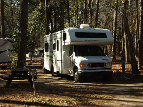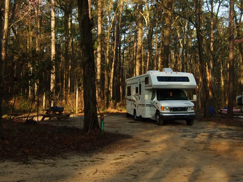 Last Wednesday, a quiet day at Country Oaks, with Bill fighting a cold while Pat did laundry and caught up with email and photographs. The free WiFi was inadequate for updating the website from laptop to the Internet. Not sorry to leave Thursday, 29°F overnight. Continued north on I-95 then Rte 17 through the Georgia flatlands round Charleston to this lovely state park. 297 miles. Nice surprise. Free WiFi, decent laundry, and nice heated bathrooms. Cold again at night, Pat has caught Bill's cold. Both of us coughing and spluttering. The sun has shone, but it's been chilly, though warming up. We've had mostly stay-at-home days, nursing our cold/cough miseries, wading through the accumulated mail, doing taxes, working out the scheduling of how to fit the next 6 months travels together. Not easy, but we're fully engaged in making this transition. Today we took Clemmie for her 50,000 mile oil change and check up, and ourselves to a clinic since our colds seemed to getting worse not better - Pat's in her sinuses, and Bill's in his chest. Result, some relief and Rx $$. Did the 'flu diminish our resources and make us more vulnerable to follow up lurgs?