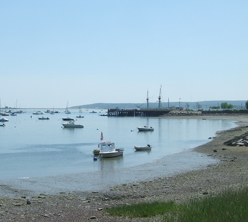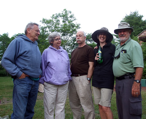 Up early yesterday morning, we went on a canoe ride with Susan and Henry on the Manhan River, thick with bird sounds and sunbeams. Beautiful. After a leisurely breakfast we took the Mass Turnpike to I-495 south of Boston, then Rte 44 to Plymouth. There, we ate fried clams for lunch on the waterfront and sweltered in the blistering heat. Bill showed Pat some Plymouth nostalgia points (his first teaching job was at the town's High School, nearly 50 years ago) and the house on Great South Pond where he and Dot lived when the kids were little. The town has changed, much more touristy. Then a few miles south to Manomet where Bill's brother Joe and his wife Anne live. (178 miles today.) Happy to see them, especially to see Joe so looking well after a bout of ill health. Enjoyed their air conditioning (the heat wave continues) and Anne's social proclivities - with several get-togethers with their neighbors and friends.