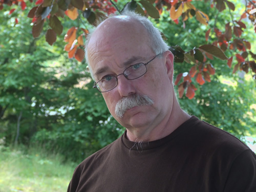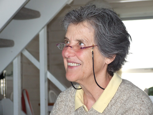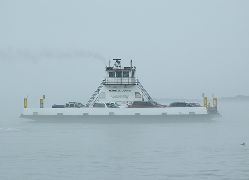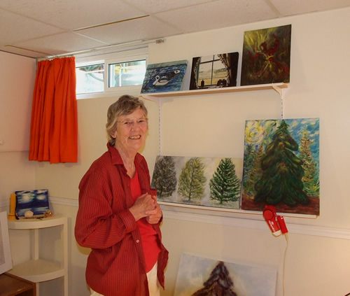 Regardless, we left around 7am and drove north on Rte 101 arriving at Mary and Cal's in Wolfville just in time for breakfast. Thoroughly enjoyed this reconnection and tour of Mary's studio. [Pix coming.] Then continuing on to Yarmouth to catch our ferry to Portland. A 5 1/2 hour catamaran crossing, uneventful except for a terrific thunderstorm plastering lightning flashes on the windows. An hour to get through customs, then pick our way in the dark along Rte 26 (re-routed - managed not to get lost) finally arriving here near 11am their time, midnight Atlantic time. Late to bed that night.