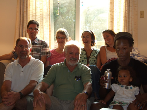As seems to be our wont, we upped and left Mary's cottage on the Maine coast early (before 6am) last Satuday. A cool 62° with light fog as we drove through Cape Rosier, back onto Route 3, and south along the Maine Turnpike. Heavy traffic, slow along I-495 west of Boston, crawling frequently near the entrance to the Mass Turnpike. From there we took I-84 into a horrendous 30-minute deluge in Harford, CT, and then to Scranton where we joined I-81 to Harrisburg, then Rte 15 to Frederick, and I-270 to Rockville. Couldn't bring ourselves to face the thought of New York City and New Jersey traffic, even though it's a shorter route. Driving at 55 our trusty Rusty (red Toyota RAV-4) gets near 35mpg on the highway, a surprisingly good 29mpg on average since we bought her 9,000 miles ago. We couldn't be happier with our not-so-new wheels. What with traffic slow downs, one accident, and the deluge, it took us until 10:30pm to do this 740 mile trip. Time for a belated "happy hour" with Gordon and Niki before bed time. Sunday we spent in recovery, then took Niki to the train on Monday morning (she's gone for a week while we hang out with 95-yr old Gordon.) Picked up Pat's piano on Monday afternoon and watched the movers come and haul it away with our 79 other boxes for transport across country to Seattle in a moving van, into a container and onto a barge to troll behind a tug for the 1,000 miles up the inside passage to Juneau. Niki and Gordon's basement hasn't been this empty for 8 years. Ours is an international move since it goes through Canadian waters (and costing us a fortune.) Thank goodness we didn't have any furniture... No regrets, though. It's miserably hot. We've had a (too) quiet week with early-morning walks before the heat set in, occasional forays into the gosh-awful traffic of the Washington area, and a visit from the Price clan for dinner. Nice quality time with Gordon. Time with Sarah tomorrow before Niki comes home, and then we (finally) depart on our westward journey.