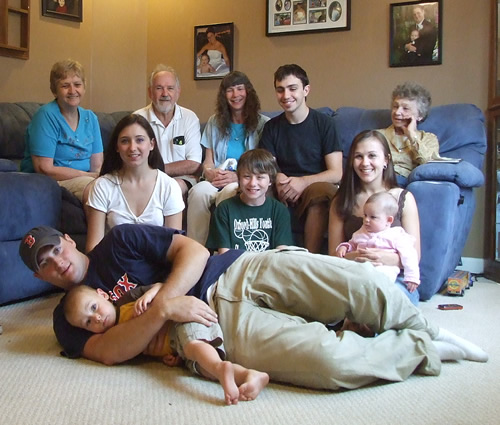 Good times in West Paris. Mostly cloudy and thundery but managed to get some exercise by doing laps up and down the ¼ mile long driveway to the main road from Donna and Nick's house or driving the 7 miles to South Paris and doing laps around the high school track. It's a lovely, but isolated, spot. Watched the kids at Agnes Gray Elementary school perform a dance choreographed by Kady. Took on responsibility for dinner each day - a way to meet our own nutritional needs and at the same time alleviate the parental burden of meal preparation with everyone running around on assorted sport and social activities leaving cooking as a lesser priority. Visited Dot (for nostalgic lunch of salmon and peas). Spent time with Lillian and Gus who drove up from Bullerica for the weekend. Saw a bit more of Ashley, Joey, and Hayden including a family gathering at their house. Went to Freeport to see Bill's niece, Chris and Tom, and twins Matt and Andy.