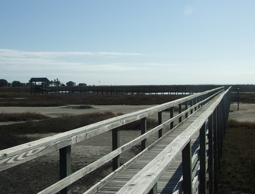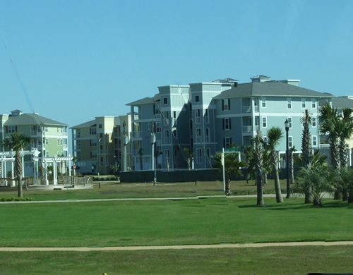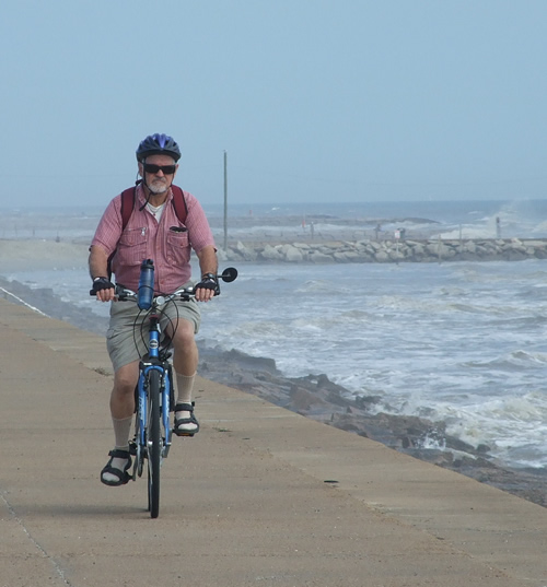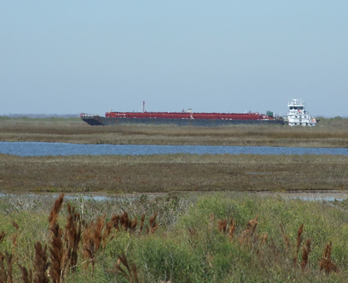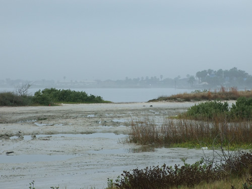 Things warmed up a bit the last several days, made it easier to move around. We've enjoyed the gulf shore and wetlands here, not a bad place. This morning we left Ancient Oaks, and Rockport, around 8am. We were well ready to leave. It's the longest we've camped in one place and we needed to find out that we're just not snowbirds, it doesn't work for us to stay put in a campground. We don't exactly fit with other winter residents, seem to have little in common. So we're back on the road. East on Rte 35 to Port Lavaca where we stopped to provision. Ran the generator to exercise it, and noticed how nice it is to sit in our own house drinking a cup of coffee in a supermarket parking lot. Then through Palacios and east on coastal routes to Freeport. Flat farm land, some grim poverty, a few flocks of airborne sandhill cranes, a field full of snow geese. Through Freeport and past a humongous Dow Chemical factory, south to Seaside and east across the bridge onto Galveston Island. Watched a barge working along the Inter-Coastal Waterway through the mudflats. We were last here 2 years ago. Then, western half of the island was bare, undisturbed grassflats and dunes. Now, it is all built up with new condos and Mcmansions by the sea. Ouch. Wonder how long it'll be before the next hurricane levels them. Migrating birds have lost a major stopping point on their way north. Drove along the seawall in Galveston looking for the Visitor Center. It had moved. Came back through town to the Galveston Island RV Park which we had selected based on reviews at RV Park Reviews, a usually reliable source. Drove in and drove out. An armpit. Did some fancy footwork and found this nice public park on the beach just past the end of the seawall. Serendipity! Lovely spot, adequate bathrooms, fast and free WiFi and a lovely Seawall bike ride into town. Plus (unknown to us) Mardi Gras starts in Galveston tomorrow. We lucked out! Think we'll stay here a while, hoping for decent weather.