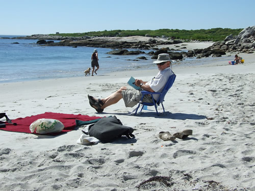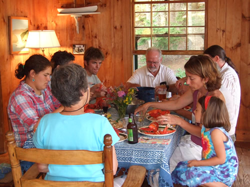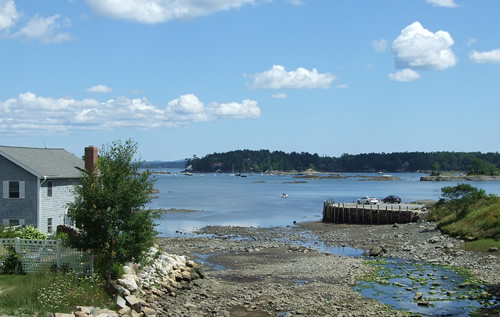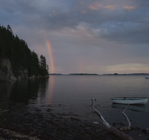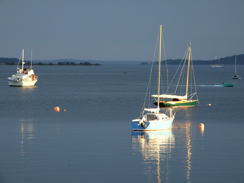 Early Sunday we said goodbye to Joe and Anne, and drove along the Maine turnpike yet again. Exited onto Rte 3 near Augusta, and continued east to Bucksport, then followed Mary's directions south onto Cape Rosier to the coast where she had rented a cottage for a week. Lovely spot, beautiful views, very quiet. Mary's son Felix arrived with Penny and Ella (now 5) later that day and we spent the week watching sailboats go back and forth along Eggemoggin Reach, Mary et al puddle around in assorted boats, the beautiful views, friends staying nearby swimming off our stony beach, some guitar time for Bill with Felix, a visit to Blue Hill, and a celebratory lobster dinner. Nice time.