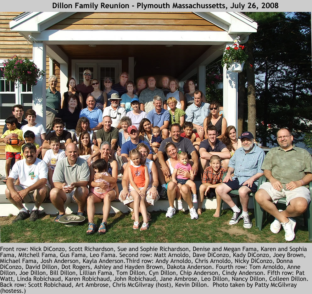 We left Donna's last Friday (a week ago today) and drove to West Boxford for lunch with Gini and Herb (plus some table time with Gini), and then to Plymouth to Bill's brother Joe's for two night. Enjoyable to expand the connection between the two brothers and their wives. Saturday we followed behind Joe and Anne for a somewhat hair-raising (get lost, make sudden U-turn) ride to a little restaurant overlooking the Plymouth airport. Sat on the balcony watching puddle jumpers come and go while eating lunch. Then to the home of Patty and Chris, friends of Bill's nephew Leo, who hosted the first ever Dillon family reunion. Great weather and a fabulous spot overlooking one of Plymouth's many ponds. Over fifty people of all ages gathered to swim, canoe, talk, eat, reminisce, and reconnect. We took many photos and some videos. As a winter project, Pat is going to try to make a DVD of the event including some family history from old photos.