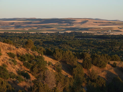 After our hike we came back to the house, cleaned it up, packed our bags and drove the 25 miles northwest to this BLM campground where the agency is housing Craig for this summer project in a camping trailer. Towards evening, we went to the nearby Cress Creek natural area and made an enjoyable sunset hike through several diverse habitats. This morning we rose early and drove to the Conant Boat Launch on the South Fork of the Snake River. Inflated a raft Craig borrowed from a friend, launched ourselves, and floated down the river about 25 miles (5 hours later) at our campground. A fabulous experience in mostly blazing sun. How lucky we are to have an experienced white-water raft and kayak guide for a son. (There was, however, no white water (or hardly any) on this relaxing trip.) Didn't see much wildlife, except for ospreys, bald eagles, and one golden eagle - the latter a rare treat. Strange to be back in an RV for this brief period, gave us an attack of nostalgia. There's something beautiful and special about living in a small space, the simplicity and intimacy of it. Yet so many people wonder how we could do it for so long. Not a bit hard. We're afraid we'll find it hard to live in a house, even though it's on the small side - at least by this culture's measure.