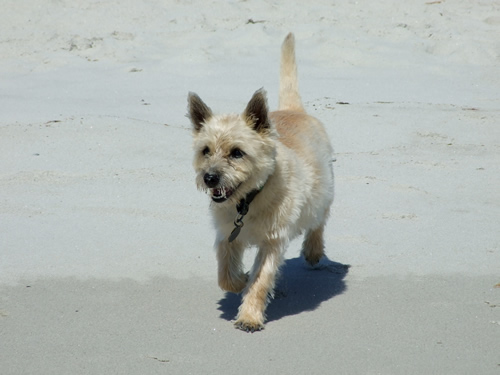 Rather exciting time our last two days at Heidi's. Came home from somewhere a week ago today late morning, Heidi not there but Jordi blithely sitting untethered on the porch. Let him into the house, made our lunch, then Heidi returned. Evidently Jordi snuck out the door as she was leaving. Then, in mid-afternoon as Heidi was working with her clients, one of them from the waiting room came to get us - Jordi had made a massive barf right on the (lovely oriental) rug. Pat cleaned it up, told Heidi between clients. Doggie beginning to look unhappy. More barf. Not hungry. Ate a little supper, barfed it back up. Overnight more discharges so Thursday morning Heidi rearranged her client load and took him to the vet, suspecting a serious dietary indiscretion while he has been loose and unsupervised. Possibly a blockage? At the end of the day, she went and brought him home for the night. A very sorry/sad looking little doggie. Bad color, muzzle and ears bluish. Thankfully, by Friday morning he had perked up quite a bit. We said goodbye to Heidi with instructions to call us with a doggie progress report. Amazing how quickly we became attached to the little sucker. Bill even googled "Cairn terriers" and learned about their temperament: fiesty, highly intelligent, independent, affectionate, good with children, and will run the household if permitted. [Pat and Heidi decided this description also matched Bill.]
