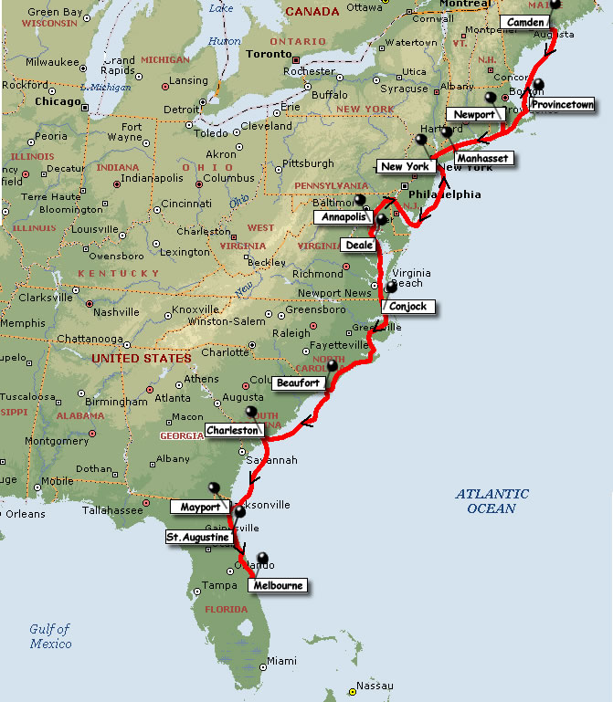 We bought Callipygia in October, 2000, then spent the first several months getting her, and ourselves, ready to go cruising. Our shakedown cruise took us to Camden, ME and on our return we moved aboard and headed south.